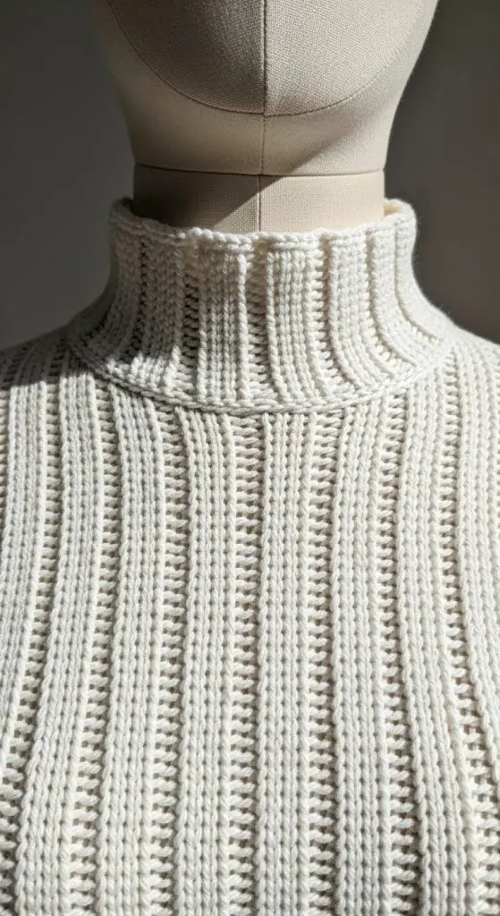 High-neck tops balance modest coverage with a contemporary silhouette. They look especially good with tailored pants or tucked into skirts. With crochet texture, white yarn makes the shape feel clean and architectural.