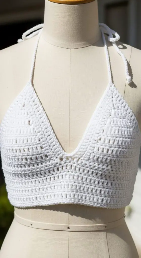 There’s something nostalgic but also modern about a halter top. The tie-up neck, the subtle open back, the crisp white cotton—it makes you feel like summer arrived early. And honestly, halter patterns are usually quicker than they look.