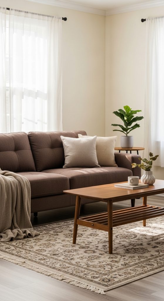 So, grab a cup of coffee (bonus points if it matches your sofa 😉), and let’s walk through 15 creative, practical, and stylish ways to rock a brown couch in your living room.
