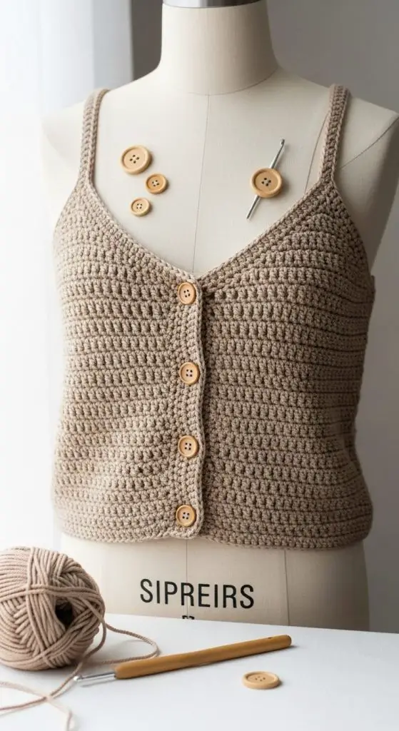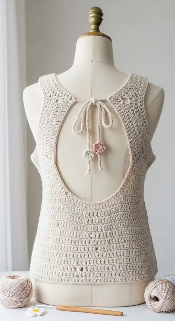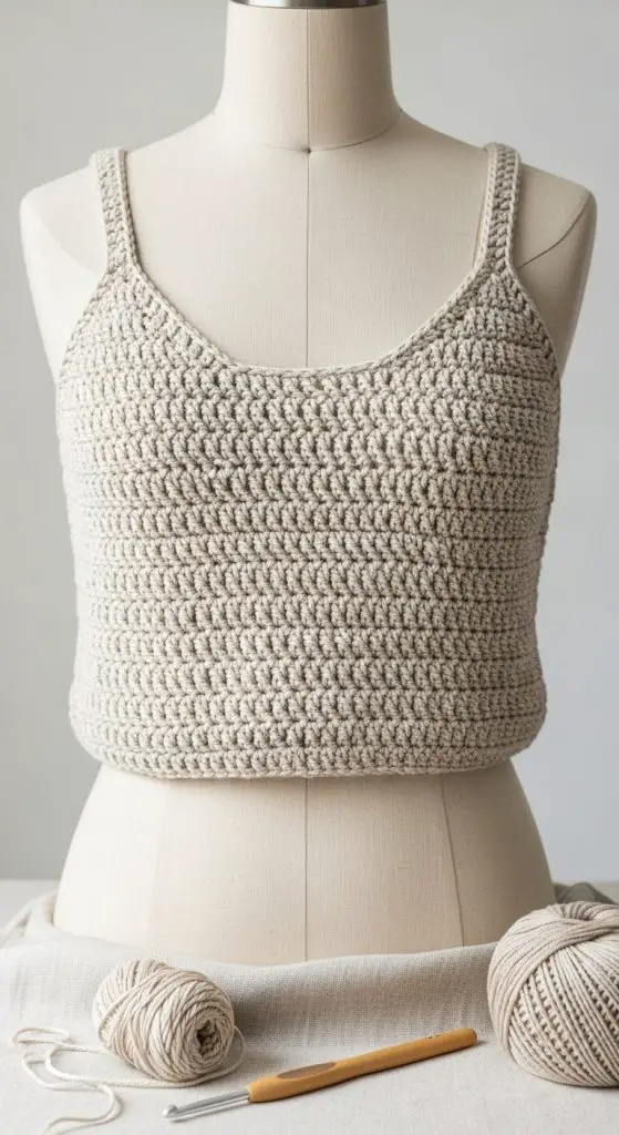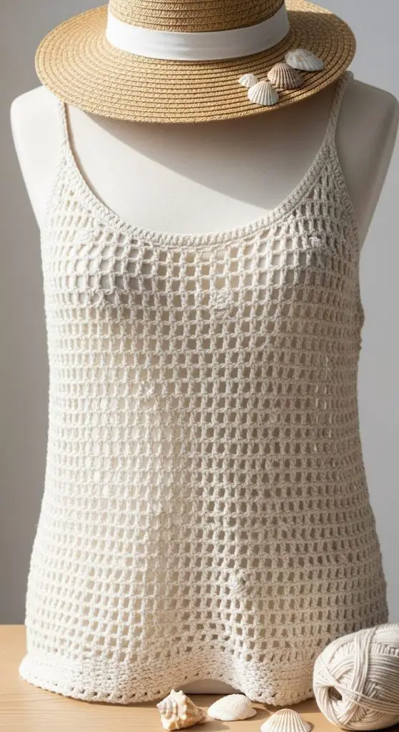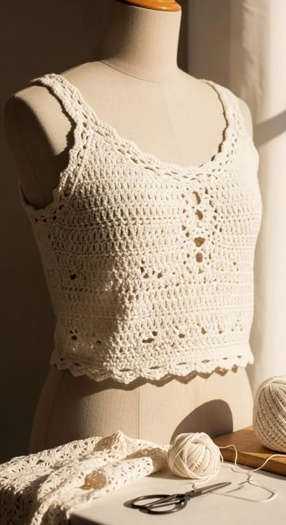 A simple cotton tank with a delicate lace edging looks boutique-level. According to a Craft Yarn Council survey, lightweight lace elements remain one of summer’s most-requested crochet styles.