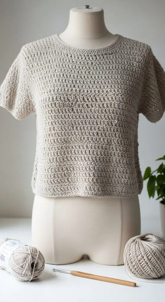 Linen-blend yarns create some of the most breathable crochet fabrics. These tops feel crisp, cool, and incredibly elegant.