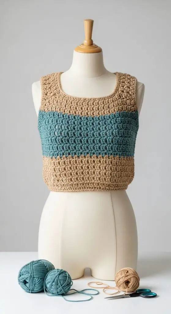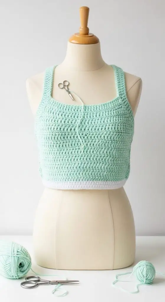 Racerback crochet tops are sporty and chic. They’re perfect for layering under cardigans, vests, or wearing solo in summer.