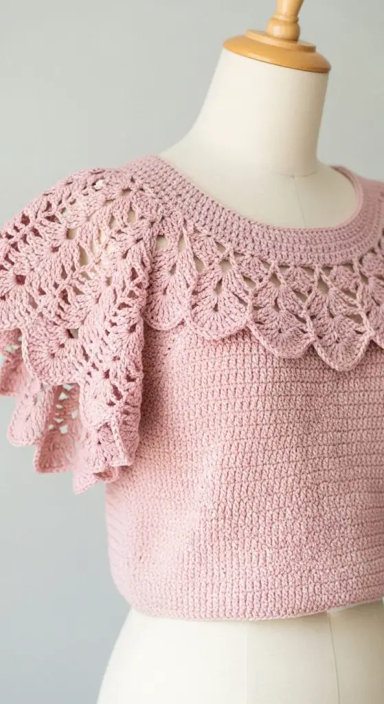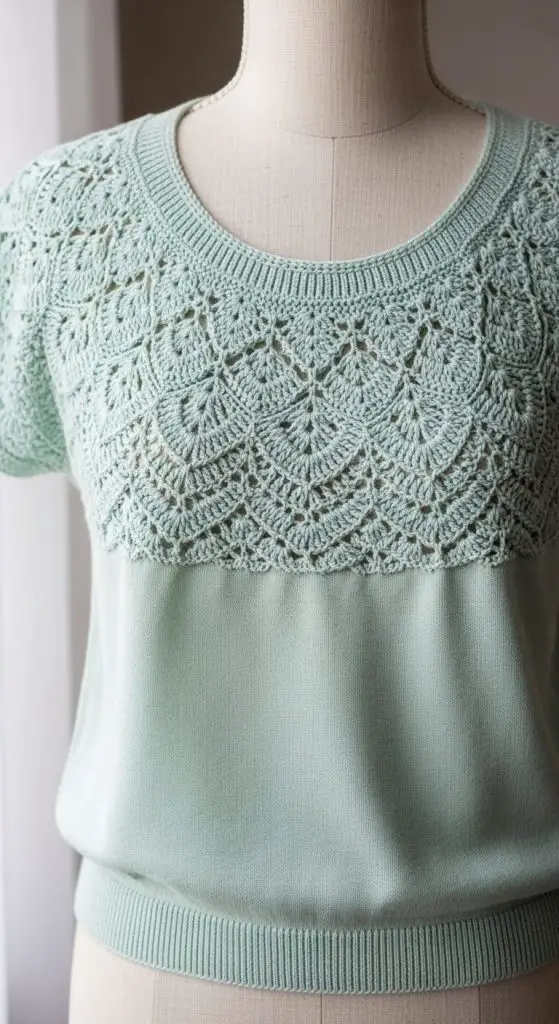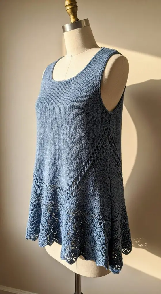 Mesh sounds bold, but straight-hem mesh tops can be surprisingly wearable. A smooth neckline and long hemline make the design feel modern. Many crafters use it as a summer beach layer or as a casual daytime piece over tanks.