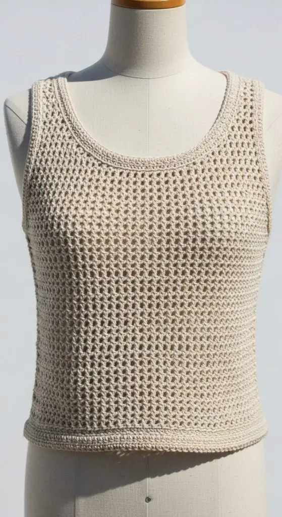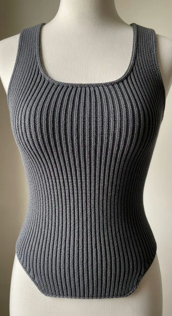 Crochet ribbing creates natural stretch without elastic. A ribbed tank hugs the body gently without squeezing. Itโs also one of the easiest tops to pair with jeans or skirts because the texture looks modern and clean.