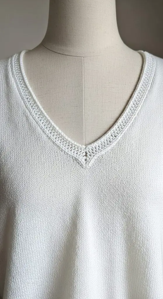 Thereโs something timeless about a V-neck tee, especially one crocheted with soft, fine yarn. It has that easy โthrow on and goโ vibe, which is why people wear it constantly. The V shape also draws attention upward, adding a flattering flow to the neckline.