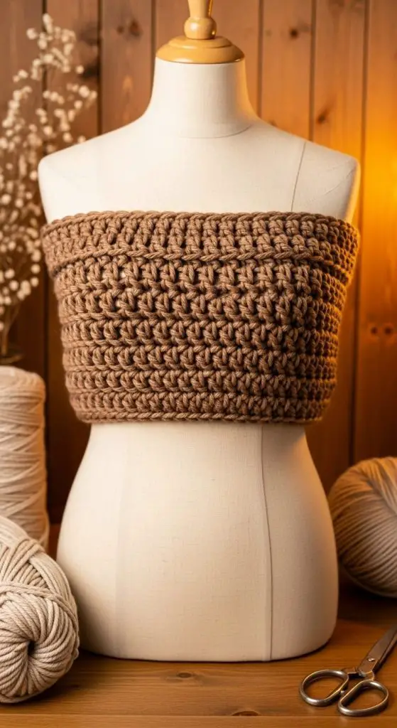 Many people use half-double crochet with elastic-like tension for this one. It creates structure without sacrificing comfort. It’s especially great if you want to wear your tube top for long outings or dancing.