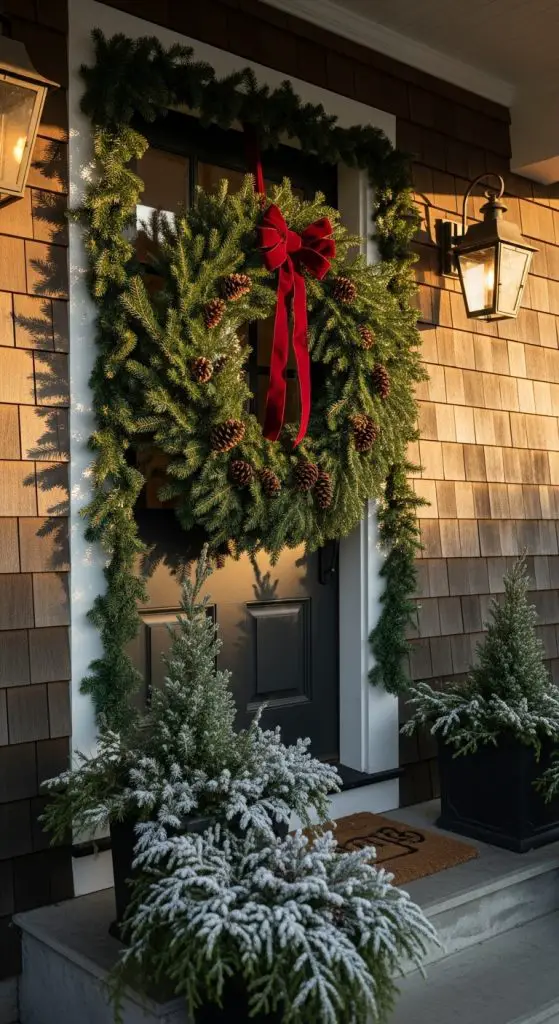 There’s just something timeless about a big, green wreath. Add a red bow, maybe some pinecones, and boom—you’ve got instant Christmas charm.