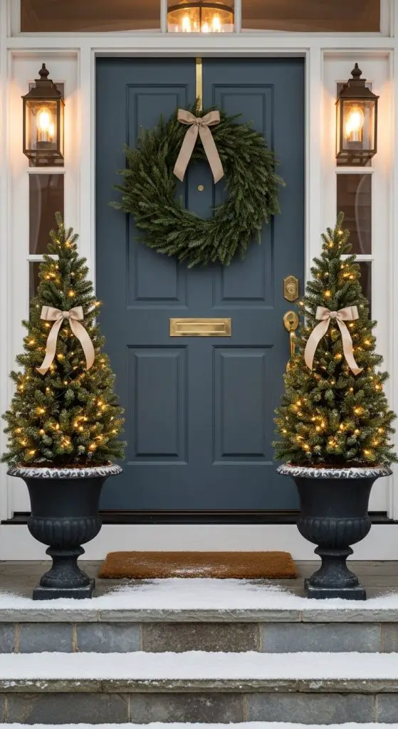 Two matching trees flanking your entry = instant symmetry and elegance. Decorate them with lights, ribbons, or keep them simple and rustic.