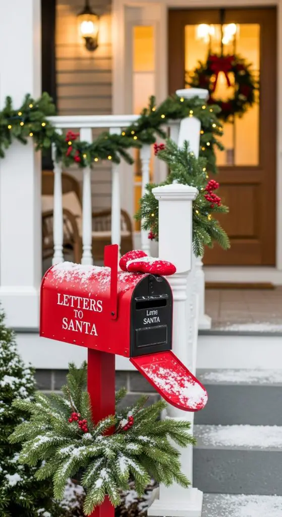 Want to delight the kids (and secretly amuse the adults)? Add a little red “Letters to Santa” mailbox to your porch. It’s charming and interactive.