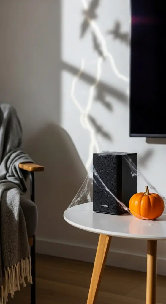 Background music or sound effects enhance your Halloween living room decor with an immersive vibe.