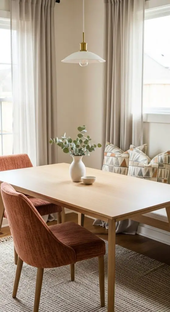 - Mix textures (linen, velvet, wood) instead of loud prints.