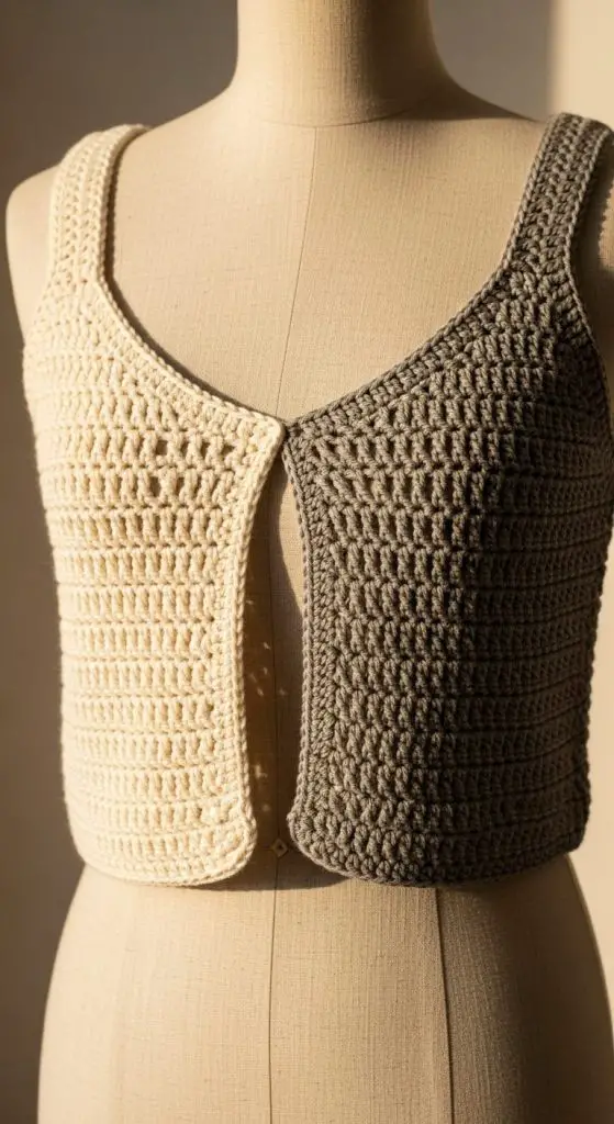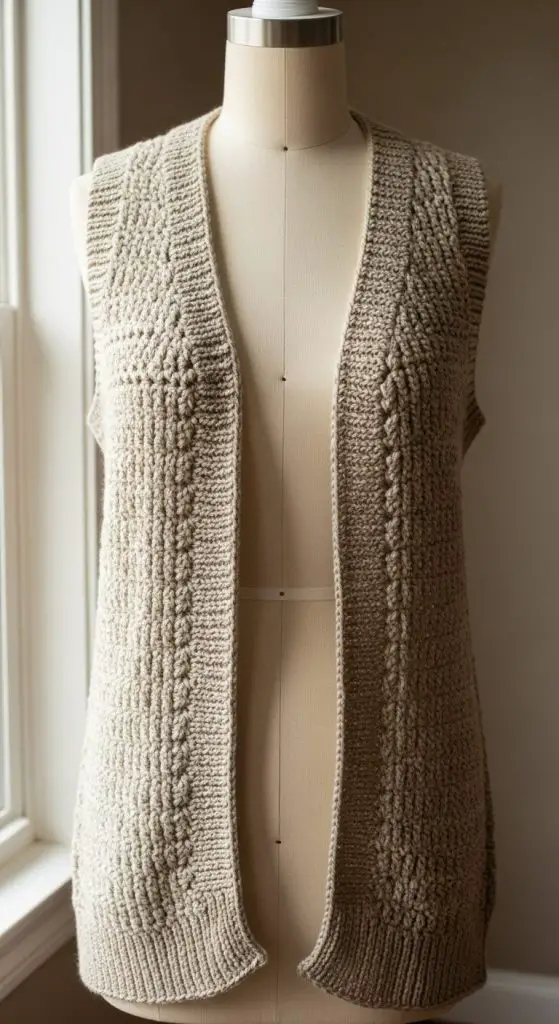 A longer vest creates instant layering magic. The solid knitted trim along the edges helps the vest maintain shape, while the crochet body stays breathable. In a 2024 wardrobe study, long vests ranked among the top transitional pieces for spring and fall.