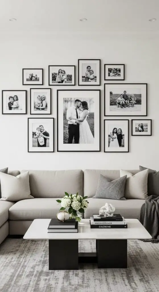 Create an Instagram-worthy wall with black-and-white family photos or art prints.