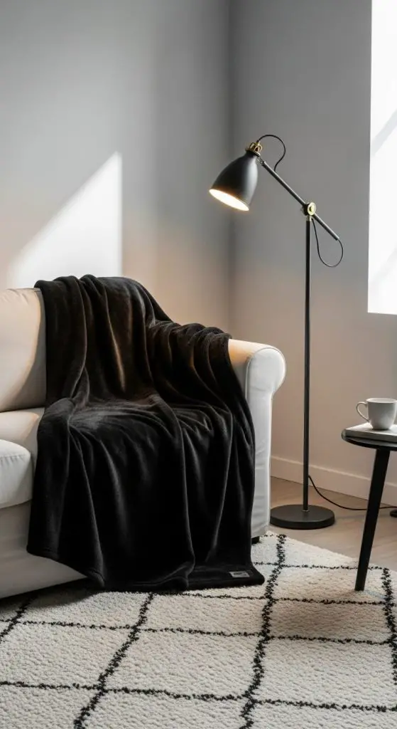 14. White Sofa + Black Throw Blanket