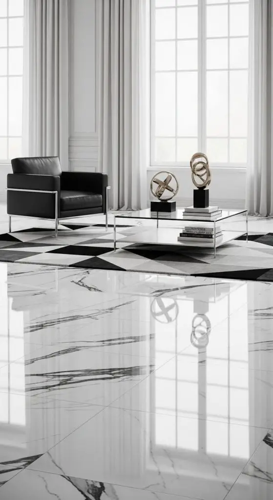 2. White Marble Flooring with Black Veins