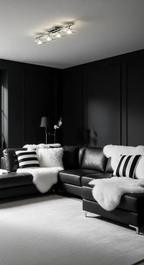 Sometimes all it takes is one bold move. A black accent wall behind your sofa or TV instantly screams drama without overwhelming the whole room.