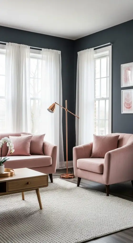 This combo is like that edgy friend who also has a soft side. Charcoal gives the drama, while blush pink softens the mood.