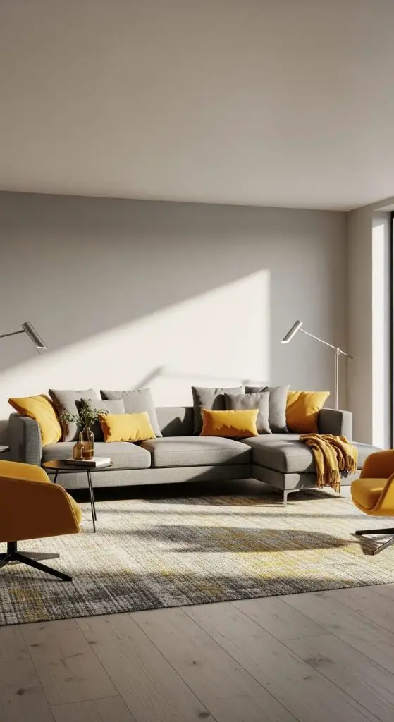 Grey is cool and understated. Mustard yellow? Bold and sunny. Together, they’re modern without being cold.