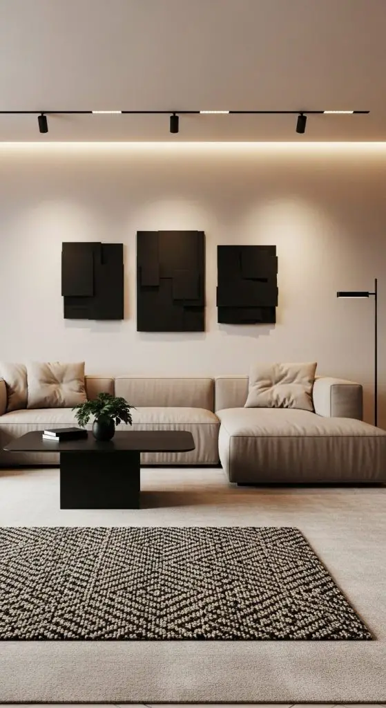 Beige softens the starkness of black, creating a chic minimalist aesthetic. Think modern penthouse vibes.