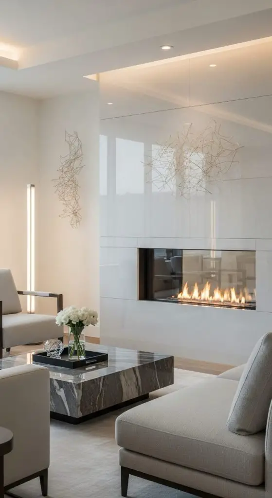 Think ultra-modern—clean lines, recessed design, and no frills. Linear fireplaces are the go-to for minimalist spaces. They provide warmth without dominating the room visually.