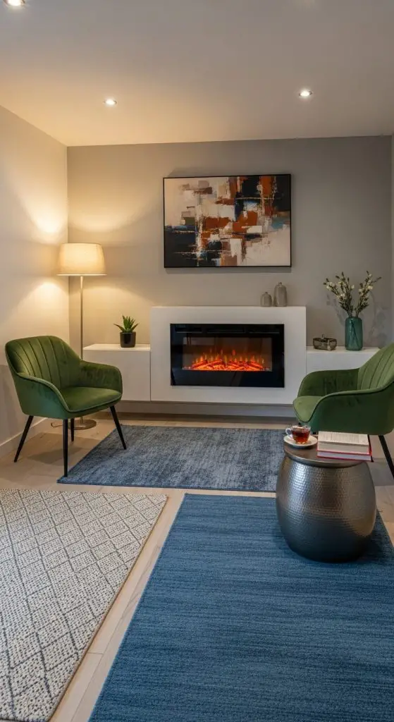 Enter the age of tech: electric fireplaces mimic flames with LED effects. Perfect for apartments or spaces where venting is impossible.