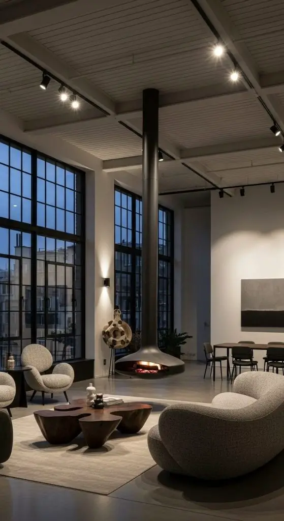 Design Milk reports suspended fireplaces are now a hallmark of luxury living rooms, especially in loft-style or open-plan spaces.