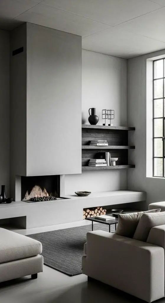 Concrete isn’t just for driveways. Minimalist concrete fireplaces bring industrial sophistication with a raw, sleek look.