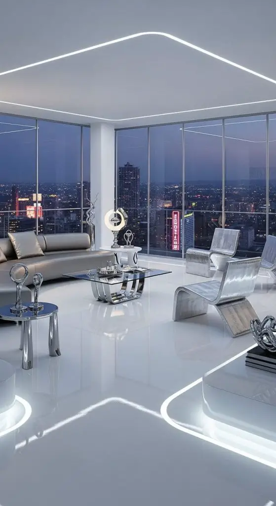 11. High-Gloss Epoxy Flooring: Futuristic Shine