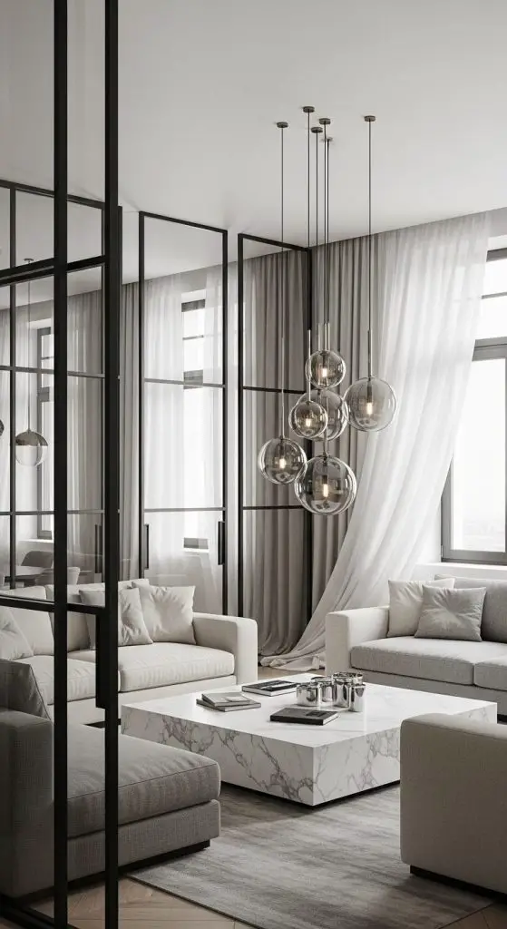 A luxury living room partition design isn’t just about splitting spaces—it’s about showing off your style, creating functional zones, and adding personality. Whether you’re into sleek glass, natural wood, dramatic marble, or quirky resin, there’s a partition idea out there that will make your living room feel more polished and purposeful.