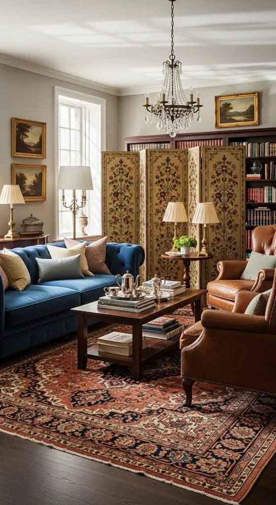 These bring a touch of old-school glamour. A luxury folding screen with leather or embroidered fabric instantly adds character.