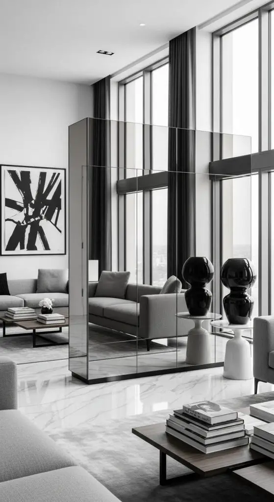 Mirrors = instant glam. A mirror-paneled partition reflects light and makes your space look double its size.