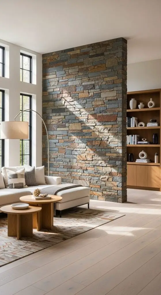 Want a raw, earthy vibe that still feels rich? Go for stone-clad partitions. They balance rugged charm with luxury flair.