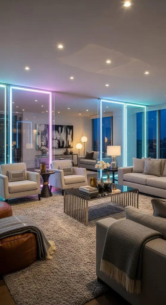 This is for those who love a little drama. Acrylic partitions lit with LEDs give your living room a futuristic glow.