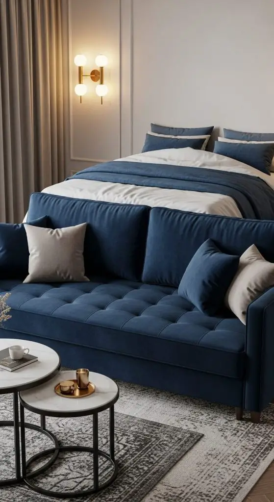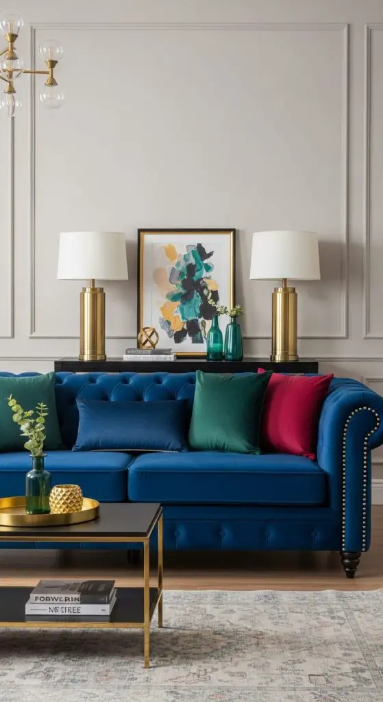 Luxury doesn’t always mean neutrals. Bold hues like emerald green, sapphire blue, or ruby red make your sofa the star.