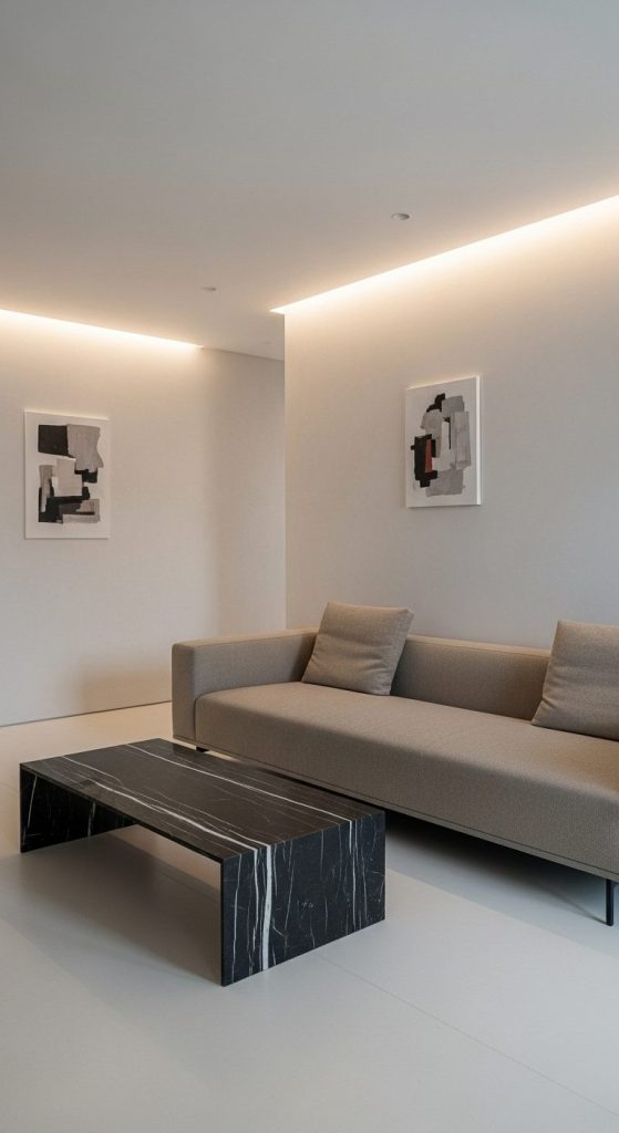 Sometimes luxury isn’t about excess—it’s about restraint. A clean, minimalist sofa set in neutral tones oozes sophistication.