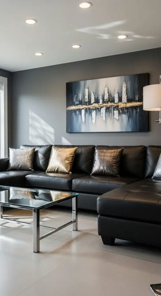 Nothing screams “boss energy” like a giant leather sectional. Add a glass coffee table, and boom—you’re in a high-end magazine.
