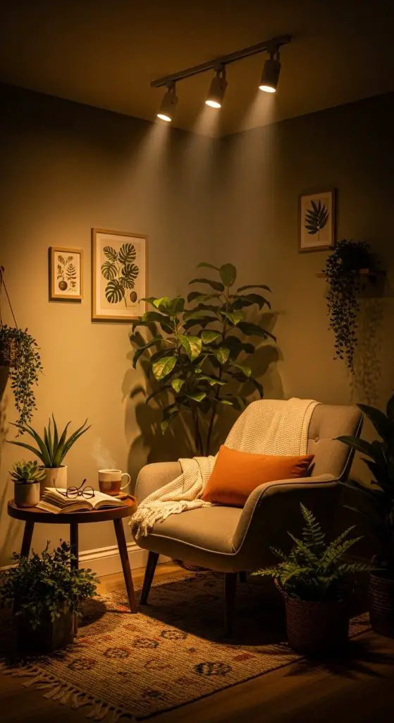 Corners often feel forgotten. Install track lights diagonally into a corner, and suddenly it’s the coziest nook for reading, plants, or that chair you never use.