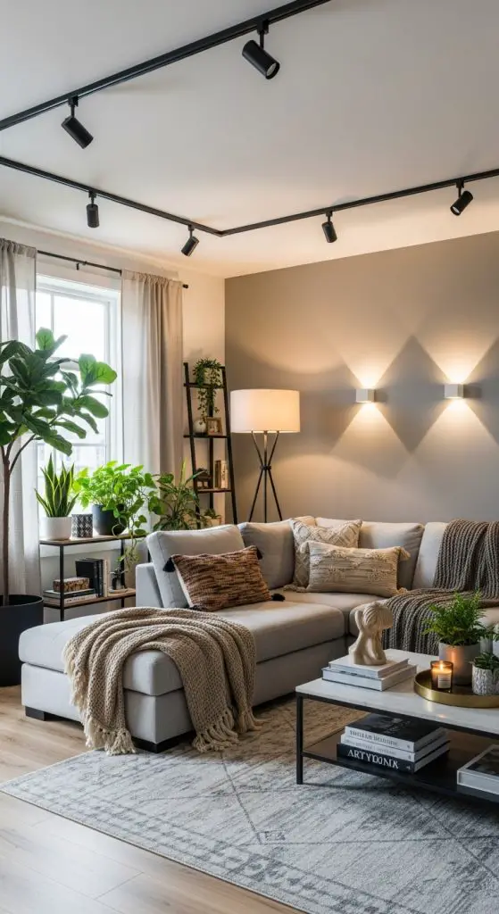 Let’s be honest—the sofa is command central. Whether you’re Netflixing or napping, it deserves its own lighting. Installing track lighting directly above makes the area cozier and practical.