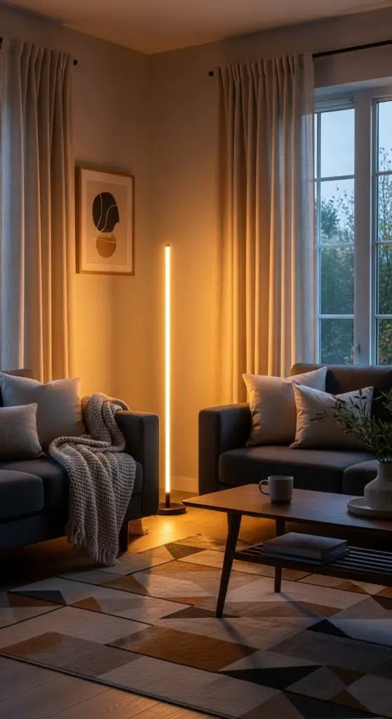 Floor lamps are like that friend who never asks for attention but somehow always makes the group better. A tall, slim LED floor lamp with a warm light bulb can completely shift the mood of your living room.