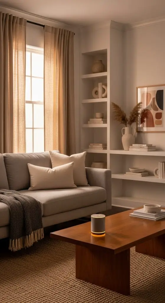 I’ll be honest—this is one of my personal go-tos. A table lamp with a warm fabric shade is basically a shortcut to instant coziness. I keep one next to my couch and turn it on whenever I want to read or just scroll endlessly on my phone (yep, guilty).